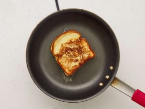 Place one slice of bread (butter side down) in a skillet over medium-low heat.